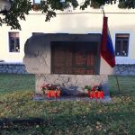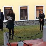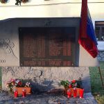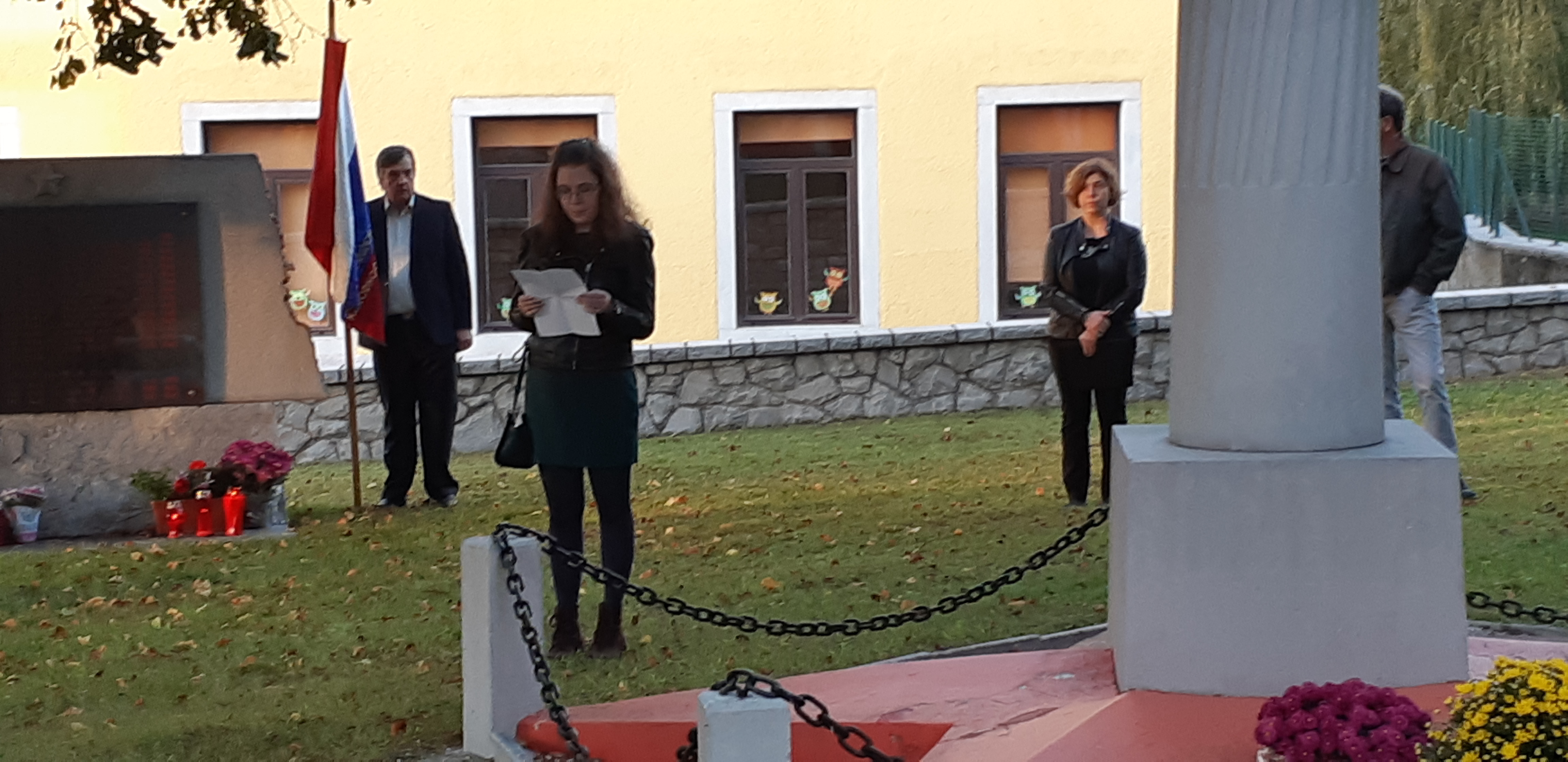 Pred spomenik je bil položen venec, sveče in cvetje.